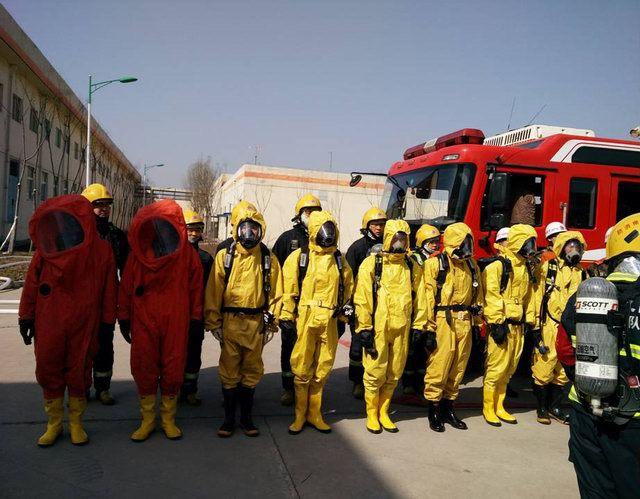 洛陽市消防支隊(duì)王榮范參謀長(zhǎng)、西工區(qū)消防大隊(duì)劉學(xué)康大隊(duì)長(zhǎng)及洛陽正大總裁辦喬光斌總經(jīng)理、食品事業(yè)部杜光輝副總經(jīng)理一行在演練前到達(dá)演練場(chǎng)地進(jìn)行安排部署,成立了消防演練現(xiàn)場(chǎng)指揮部,由洛陽市消防支隊(duì)王榮范參謀長(zhǎng)任指揮長(zhǎng)。演練假設(shè)正大食品有限公司制冷機(jī)房因設(shè)備發(fā)生故障,液氨罐發(fā)生泄漏,1名操作人員受困,現(xiàn)場(chǎng)人員立即向公司領(lǐng)導(dǎo)匯報(bào)并撥打119尋求支援。119指揮中心在接到報(bào)警后,由洛陽市消防支隊(duì)協(xié)調(diào),迅速調(diào)集澗西消防大隊(duì)下屬谷水中隊(duì),西工區(qū)消防大隊(duì)下屬車站中隊(duì)、紅山中隊(duì)迅速趕赴現(xiàn)場(chǎng),與此同時(shí)正大食品有限公司迅速啟動(dòng)單位應(yīng)急預(yù)案,組織員工疏散。十五分鐘后,紅山消防中隊(duì)6臺(tái)消防車、2臺(tái)救護(hù)車到達(dá)現(xiàn)場(chǎng),消防戰(zhàn)士著防化服立即進(jìn)入現(xiàn)場(chǎng),對(duì)氨中毒人員進(jìn)行搶救,對(duì)氨泄漏部位進(jìn)行應(yīng)急處置。二十分鐘后谷水中隊(duì)、車站中隊(duì)6臺(tái)消防車達(dá)到現(xiàn)場(chǎng)支援, 50余名消防員展開救援戰(zhàn)斗,用消防水槍噴水中和泄漏的氨氣,降低空氣中氨的濃度。經(jīng)過近一個(gè)小時(shí)的搶維修,氨泄漏得到控制,演練指揮中心宣布本次演練***結(jié)束。