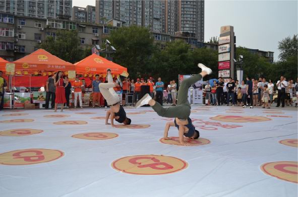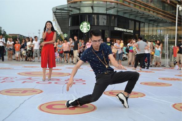 活動時長大約30分鐘,首先快閃人員在王府井南昌路店門口廣場中央集合,穿戴著簡單大方、整齊利索的衣物四處游走在人群中。時間一到,音樂響起,歌手慢慢走近中央,一首振奮人心的“我和你”拉開整個活動的序幕,瞬間引起了在場所有人群的關(guān)注。緊接著舞蹈演員閃亮上場,展開了一場激情澎湃的機(jī)械舞,帶動現(xiàn)場觀眾情不自禁參與到表演中來,此時人流迅速聚攏,引起圍觀。然后正大食品有限公司員工身著公司服裝,唱著正大集團(tuán)《愛是正大無私的奉獻(xiàn)》一起出現(xiàn)在廣場中央,隨后幾段歌舞串燒將現(xiàn)場氣氛推向***,在觀眾意猶未盡之時迅速閃開在人群之中?;顒舆^程中穿插進(jìn)行了分發(fā)公司宣傳材料、食品安全知識宣傳單,現(xiàn)場觀眾品嘗了洛陽正大豬肉調(diào)理品、醬鹵產(chǎn)品及集團(tuán)現(xiàn)代食品。